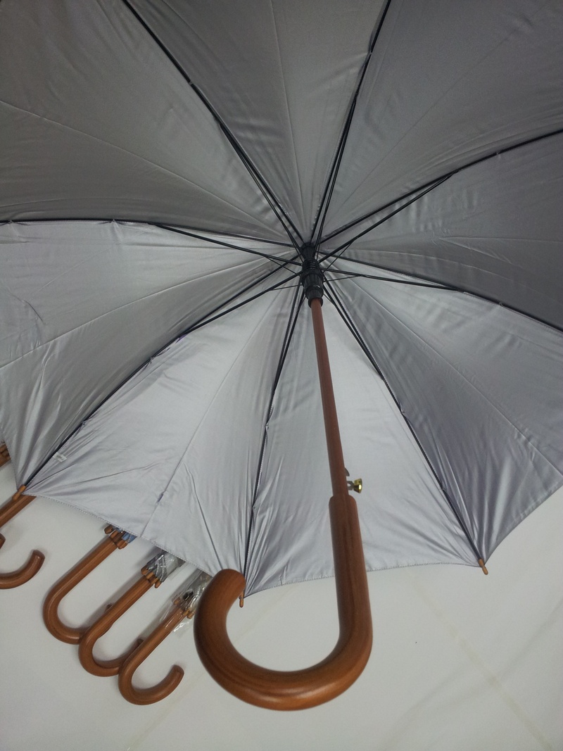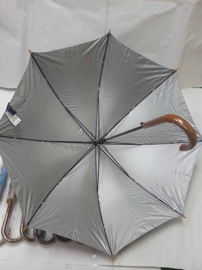 3號-加大直遮(27吋自動仿木大彎柄銀底防UV布)