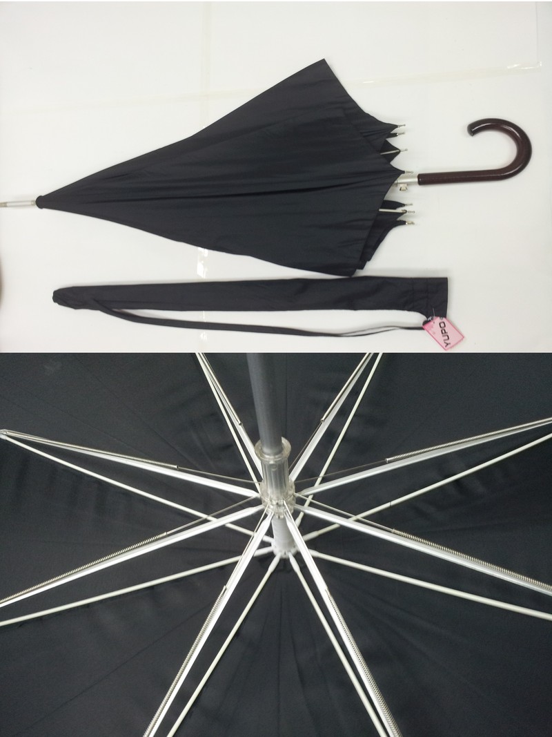 9號-高級鋁直遮(27吋自動原木手柄鋁棍白纖維長骨)